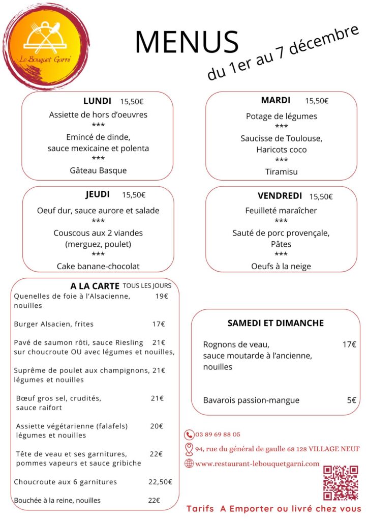 Menus du 1er au 7 décembre